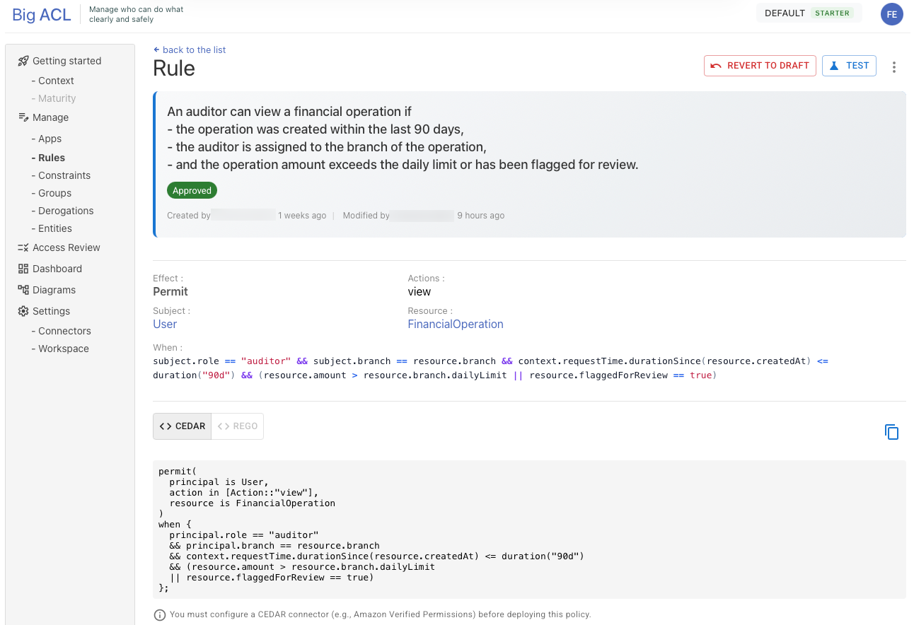 - Approve or Reject: A reviewer can approve the rule or reject it back to Draft