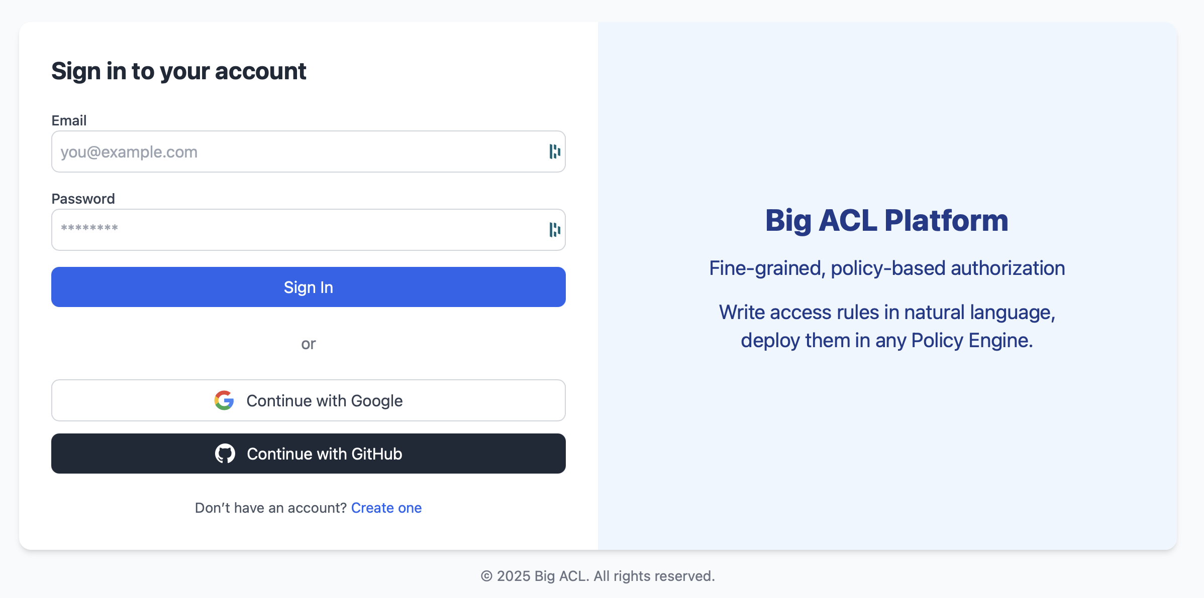 For social login, the security posture is inherited from the provider (Google or GitHub), but Big ACL may apply additional security checks.